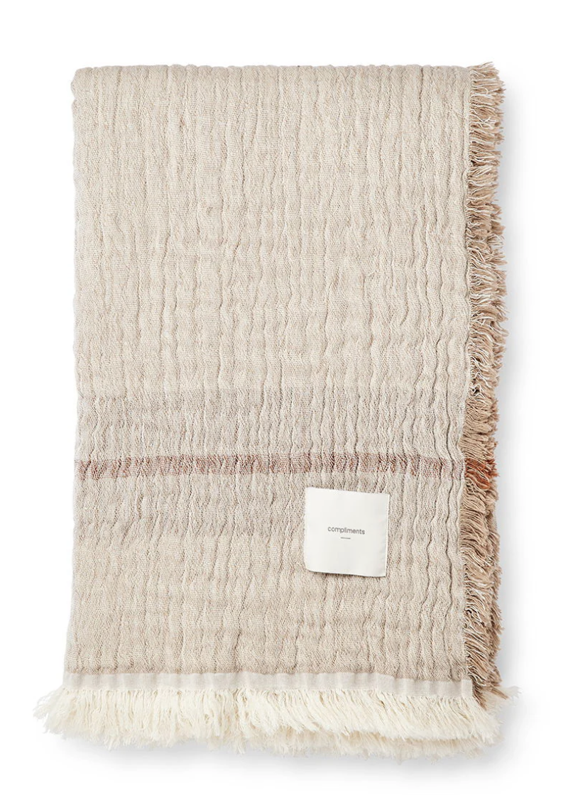 Tilføj blødhed og varme i hjemmet med Loire, en smuk sandfarvet plaid i stenvasket bomuld. Dens strukturvævede, krøllede look og enkle stribemønster giver et moderne og tidløst udtryk.