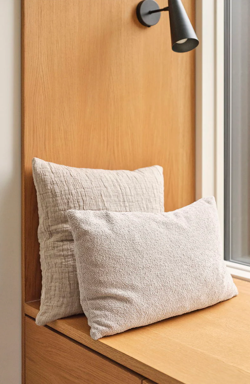 Ensfarvet Taffy pude i en enkel, luksuriøs bouclé, som evner at løfte rummets udtryk og skabe en særlig stemning. Taffy findes i flere størrelser og smukke farver.