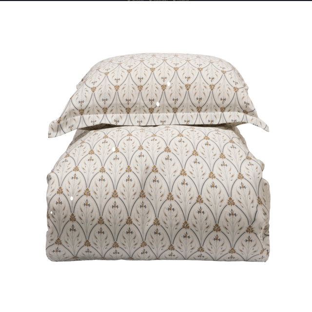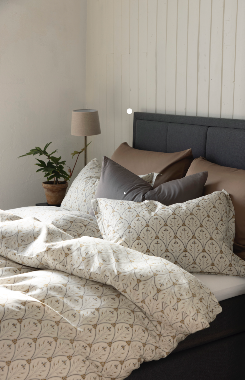 Giv soveværelset et strejf af romantik med Marino sengesættet. Det vintage-inspirerede mønster er elegant og skaber ro med bløde linjer og fine blomsterdetaljer – alt sammen i smuk symmetri. Sættet er lavet af blød bomuldssatin, der føles glat og lækkert mod huden. Pudebetrækket har en fin oxford-kant, og både pude og dyne lukkes med lynlås. Marino er OEKO-TEX Made in Green-certificeret og fås i to stilfulde farver: beige og grå.